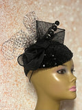 Black Sequin Circular Fascinator Half Hat for Church Head Covering, Mother of the Bride, Tea Party and other Special Occasions