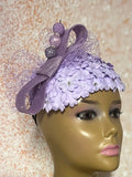 Lavender Mini Flower Fascinator Half Hat, Weddings, Church, Head Cover