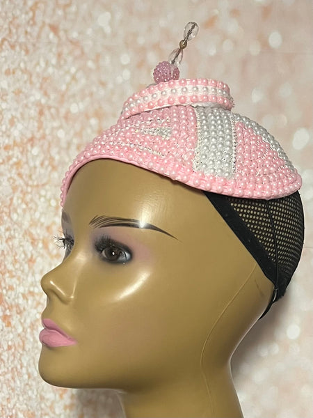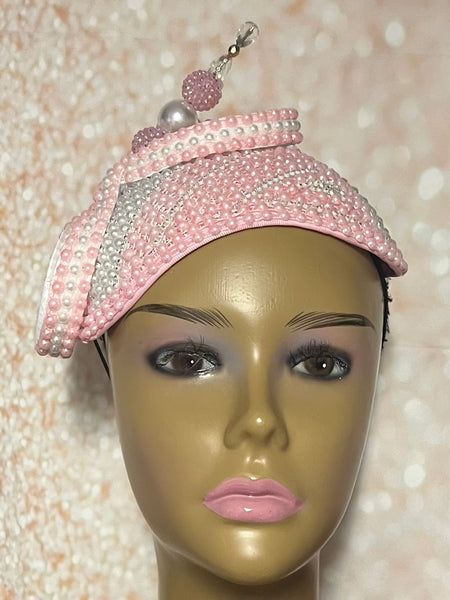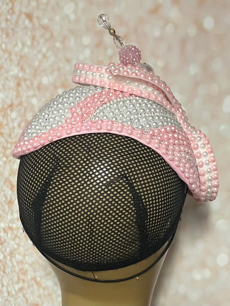 Pink and White Beaded hat for Church, Wedding, Mother of the Bride, He