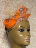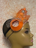 Silver and Orange Headband Half Hat Fascinator for Church Head Coverin