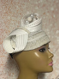 Simple, yet elegant. White Beaded Fascinator half hat trimmed with beaded hat pin, bow, rhinestones and pearls.