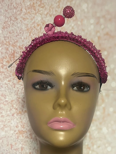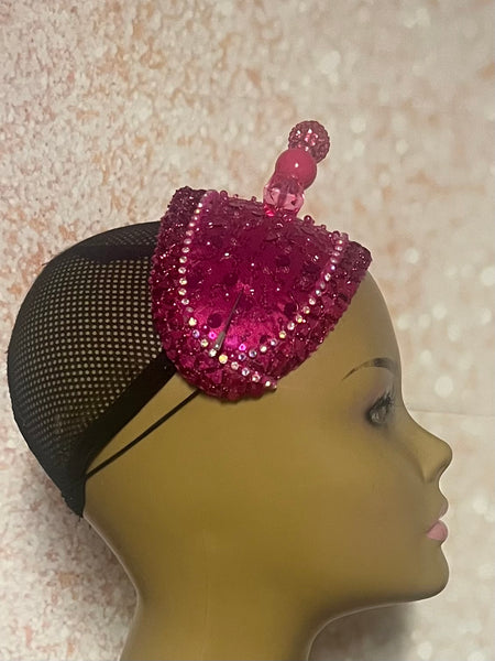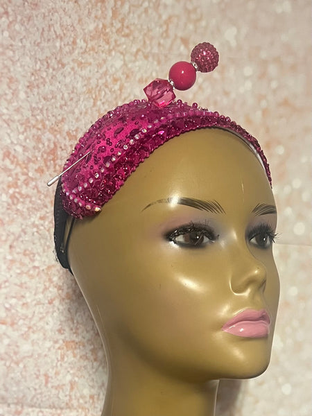 Fuchsia Pink Crystal Sequin Beaded Headband Hat | Pink Fascinator Hat for Church, Wedding, Tea Party